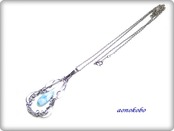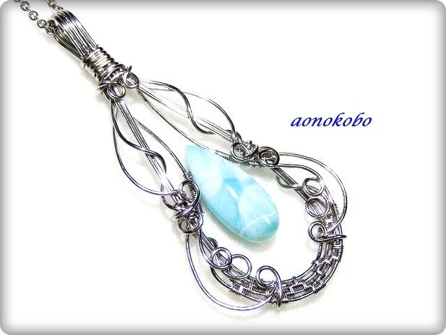 カリブ海が世界に誇る天然石、ドミニカ産ラリマーのペアシェイププレーン型で、ステンレスワイヤーを使い、ペンダントトップを作りました。