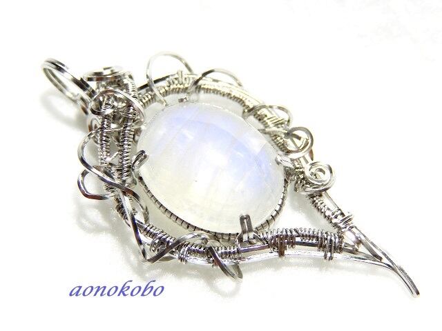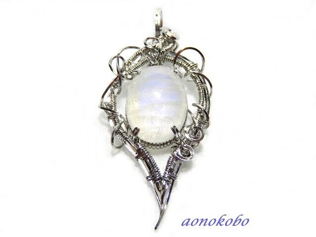 ブルームーンストーンのステンレスワイヤーペンダント