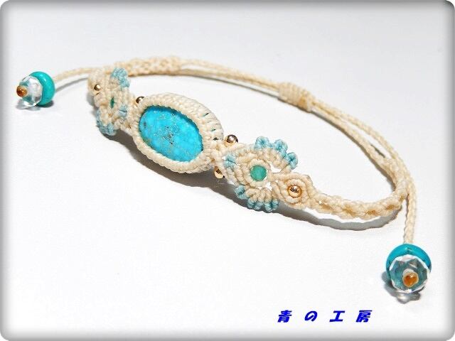 マクラメは蠟引き糸を使用していますので、金属アレルギーの心配はありません。