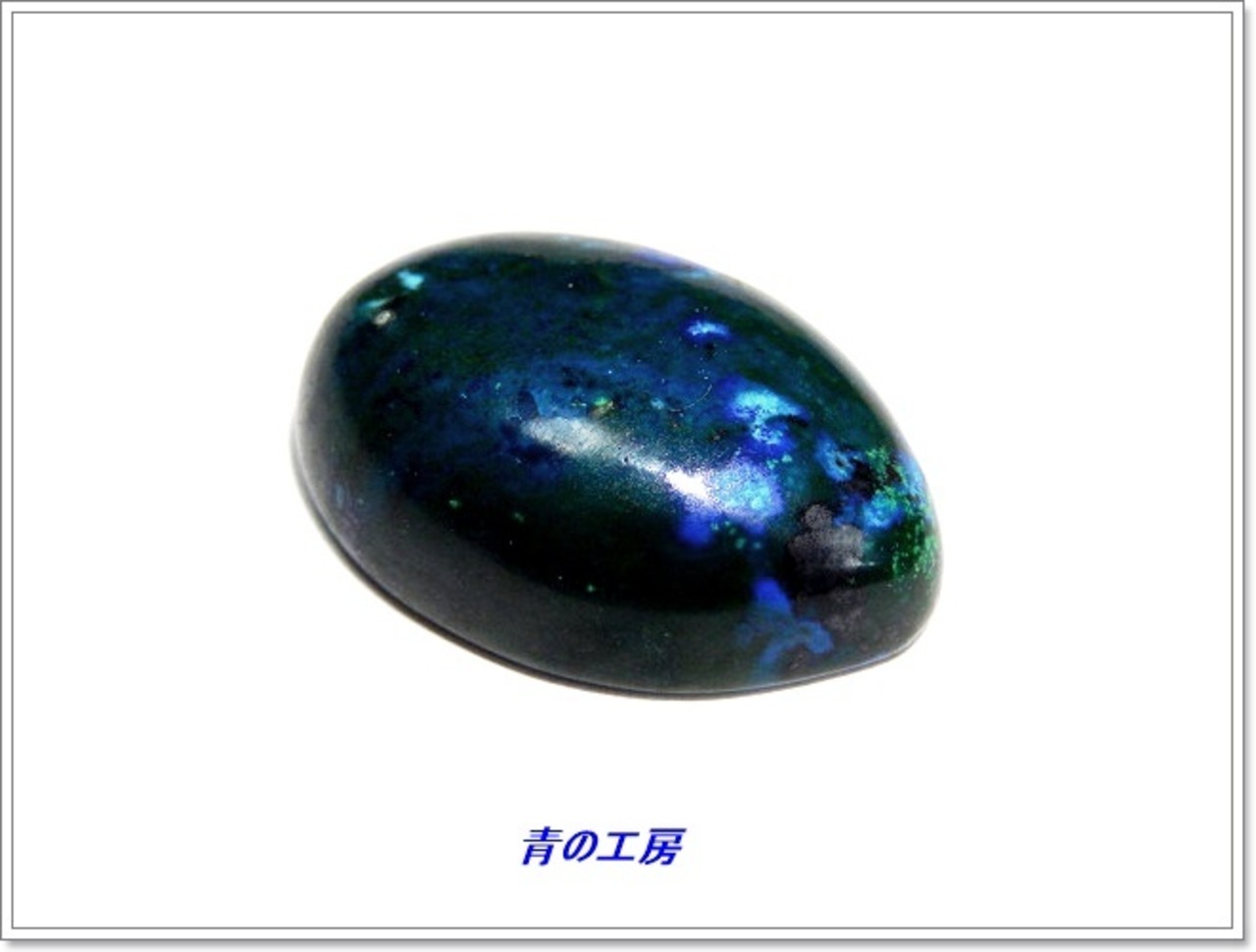 緑が濃く、その中に点在するブルーは光を当てると大変きれいで、趣のあるルースに仕上がりました。