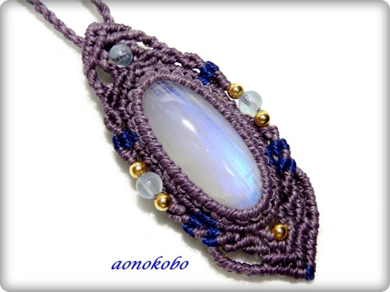 レインボームーンストーンのマクラメペンダント