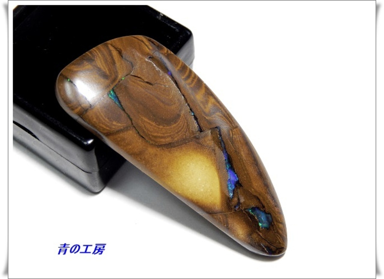 大きな母岩で表面にはへこみがありますが、オパールが深く入り込んでいて、大変美しいルースです。