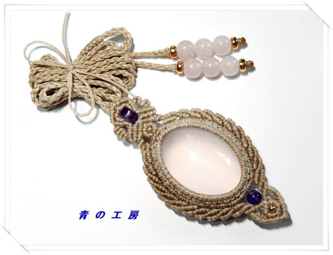 (MP49)ローズクォーツのマクラメペンダント