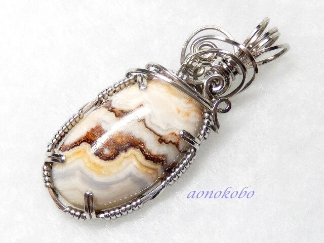 クレージーレースアゲート(メキシコ産)のステンレスワイヤーペンダントトップ