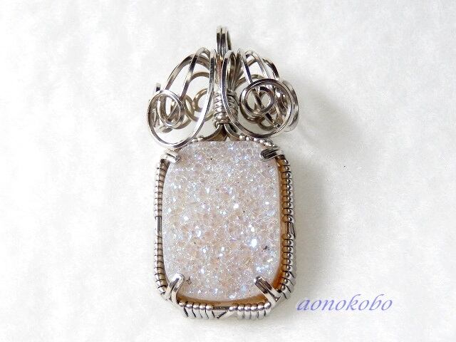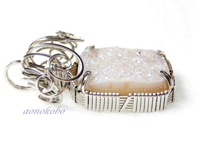 微結晶が群晶しているきれいなドゥルージーアゲートの表面を、チタン等で蒸着加工した、デポジッション ドゥルージーアゲートを、ペンダントトップに仕上げました。