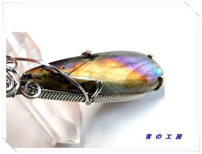 アフリカ産レインボーラブラドライトを使用して、ステンレスワイヤーでペンダントを作りました。