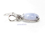 ブルーレースアゲートの羽根ステンレスワイヤーペンダントトップ