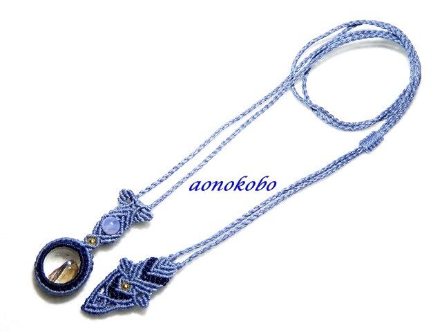 中の水晶が少し黒く見える部分は、マクラメ糸の色が干渉しているためです。